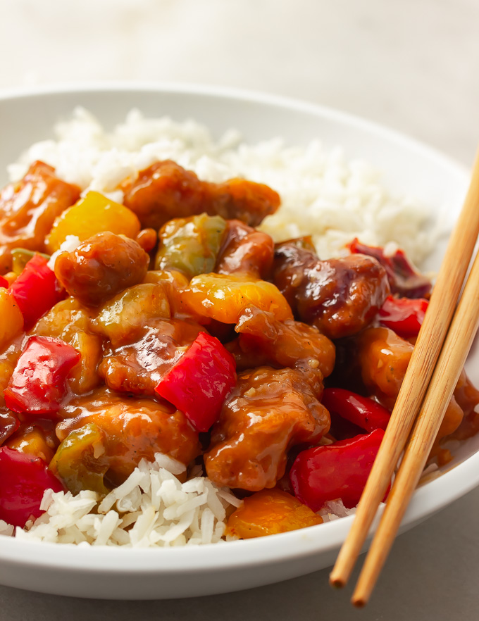 I love the tangy flavors ofย sweet and sour chicken. The sauce is still the star of the dish even if you omit the chicken and additional veggies like broccoli or mushrooms.ย
